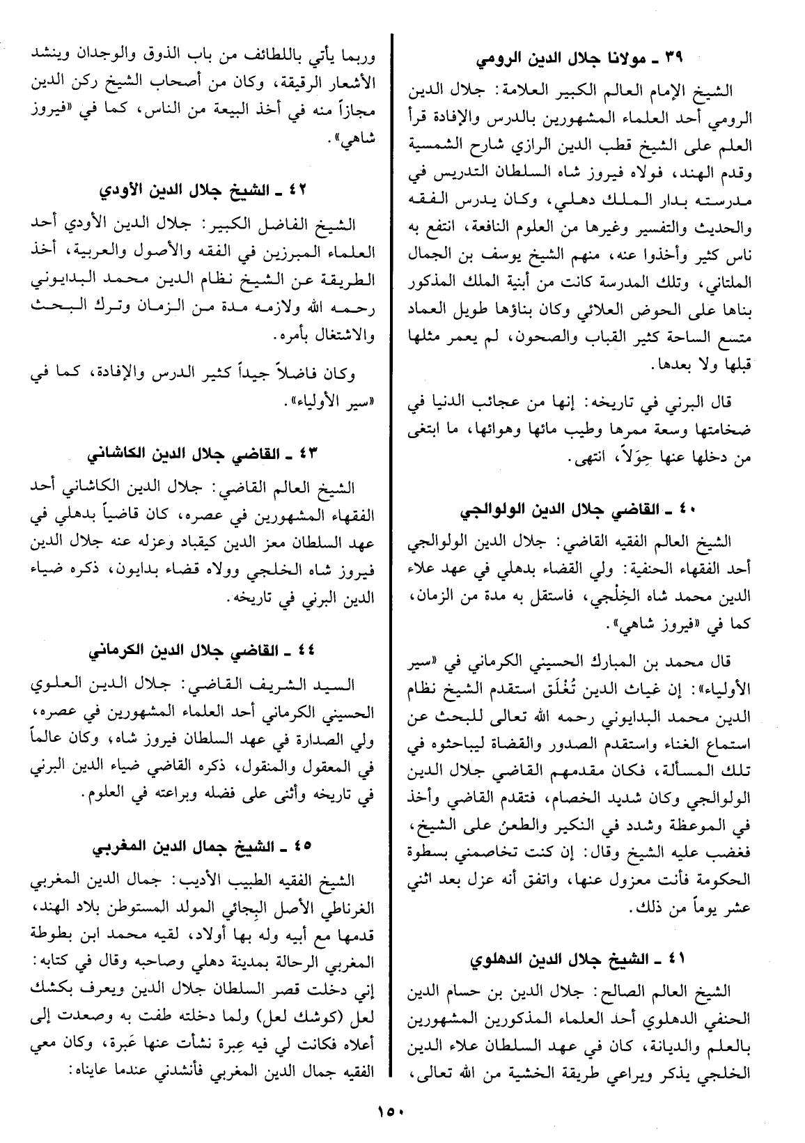 المشهورين بالعلم والديانة، كان في عهد السلطان علاء الدين الخلجي يذكر ويراعي طريقة