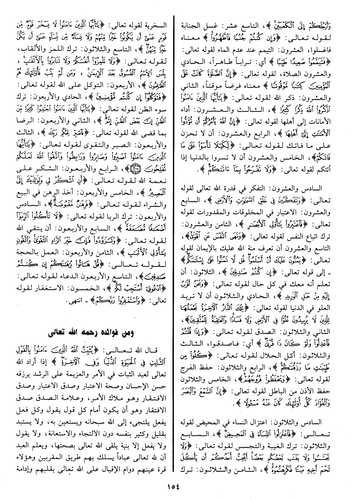 الظلمون"، الأربعون: التوكل على الله لقوله تعالى "فتوكلوا إن كنتم مؤمنين"، الحادي
