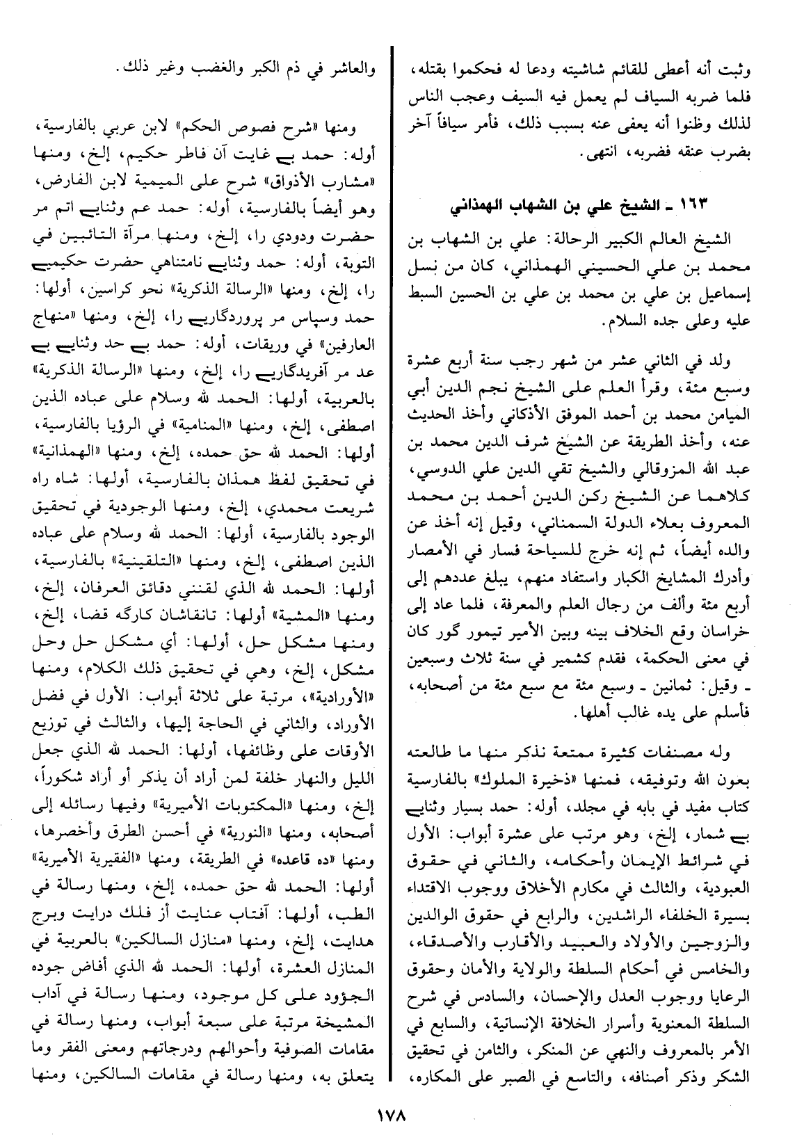 حمده، الخ، ومنها الهمذانية في تحقيق لفظ همذان بالفارسية، أولها: شاه راه شريعت