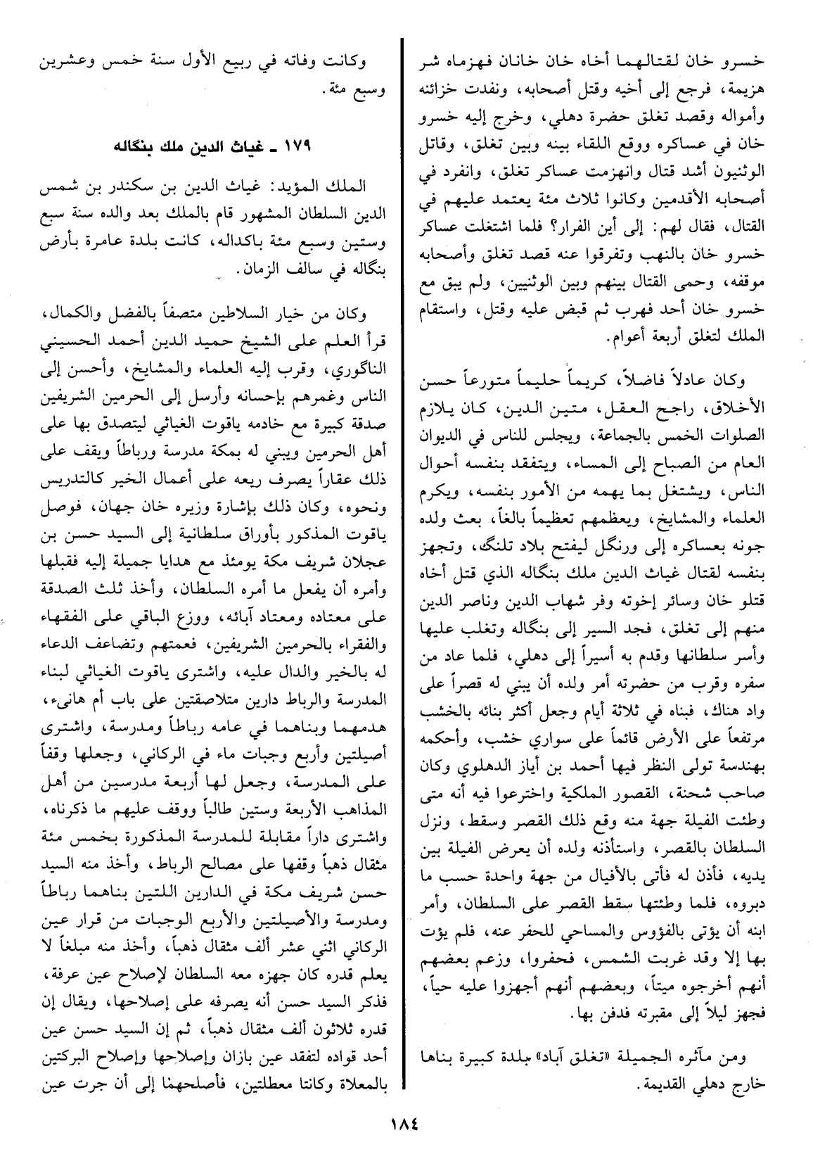 الدين وناصر الدين منهم إلى تغلق، فجد السير إلى بنكاله وتغلب عليها وأسر سلطانها