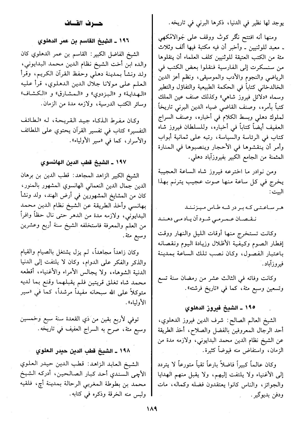 الشيخ الفاضل الكبير القاسم بن عمر الدهلوي كان والده ابن أخت الشيخ نظام الدين