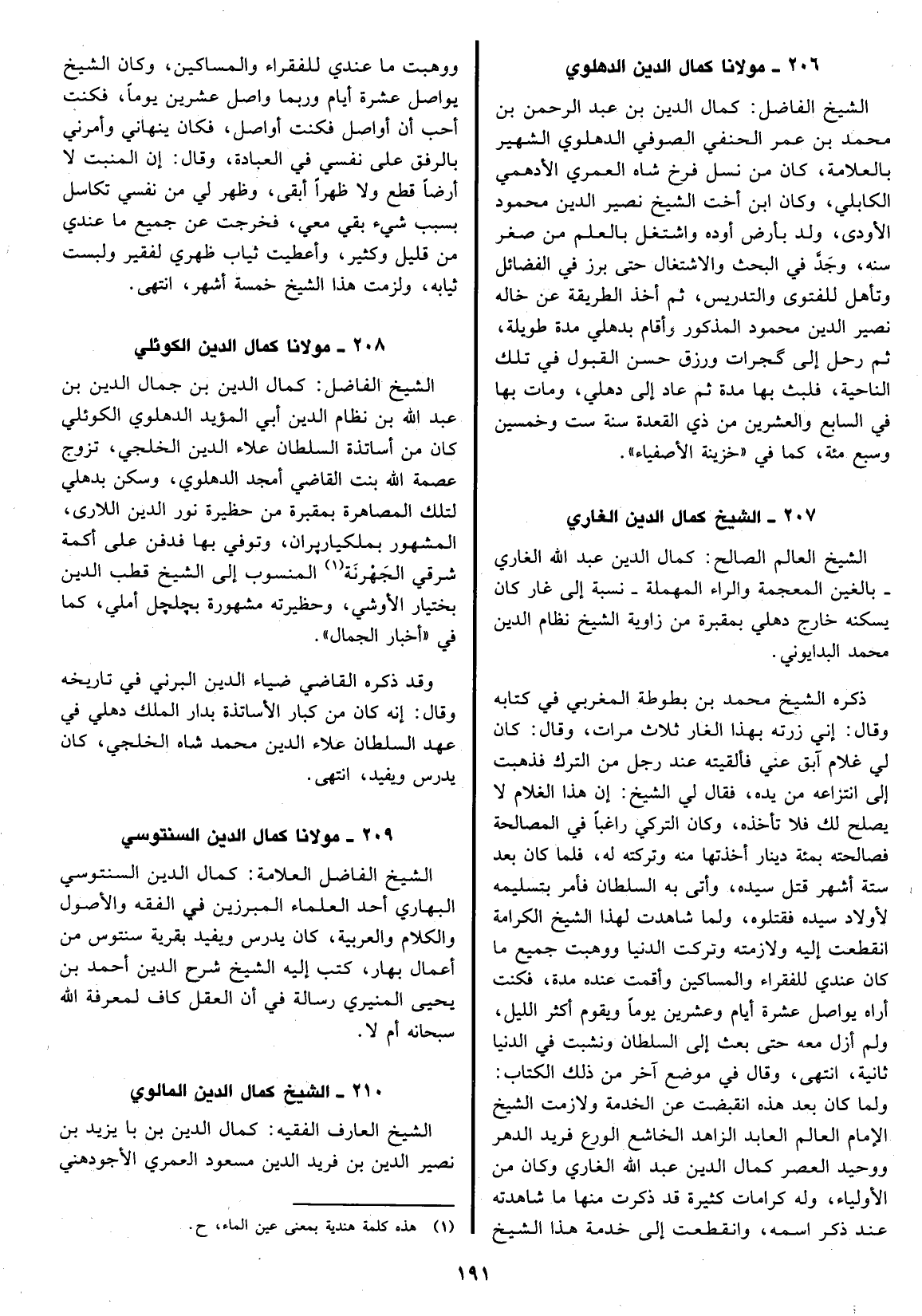 الشيخ الفاضل كمال الدين بن عبد الرحمن بن محمد بن عمر الحنفي الصوفي الدهلوي