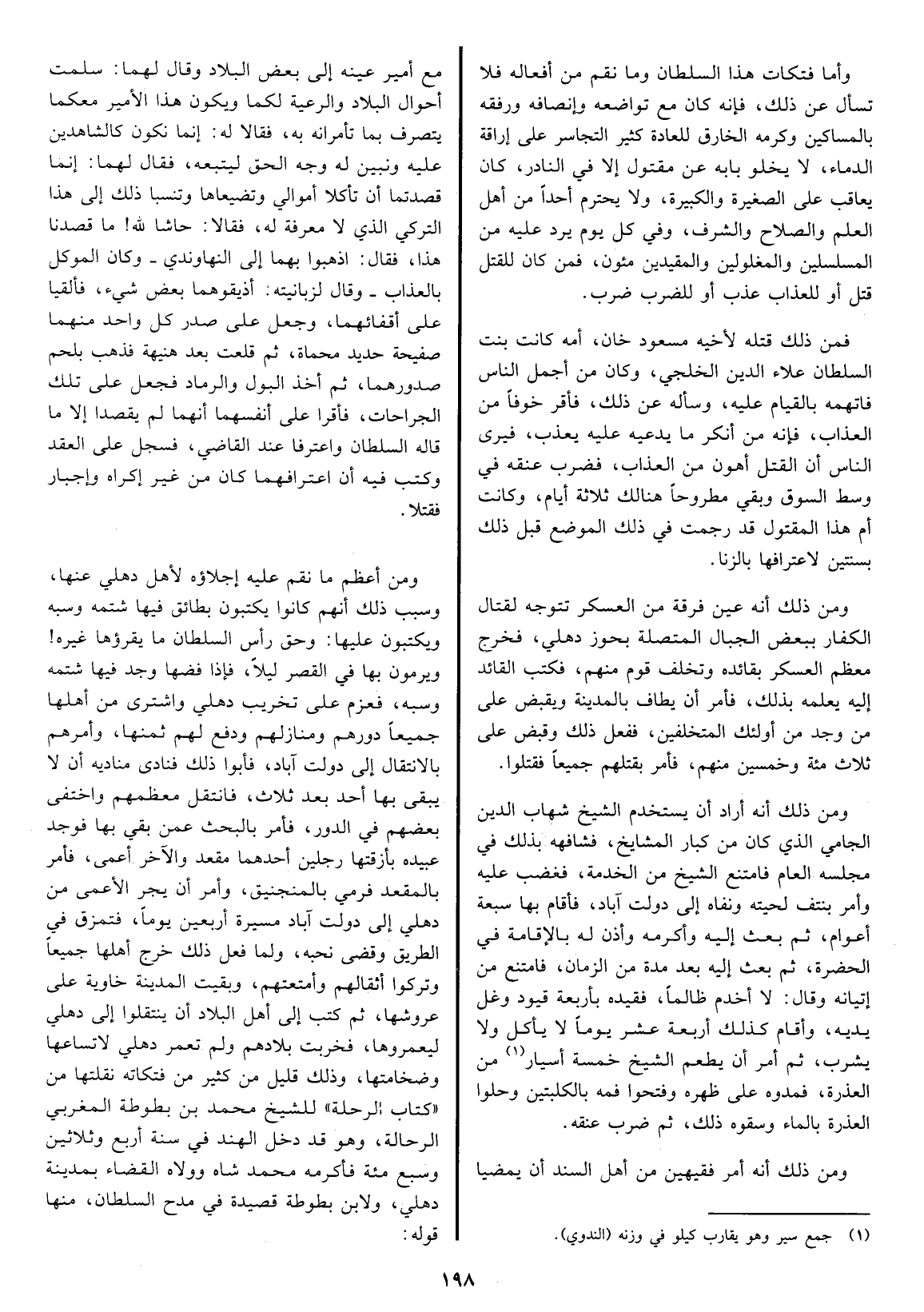 فخرجت بلادهم ولم تعمر دهلي لاتساعها وضخامتها، وذلك قليل من كثير من فتكاته