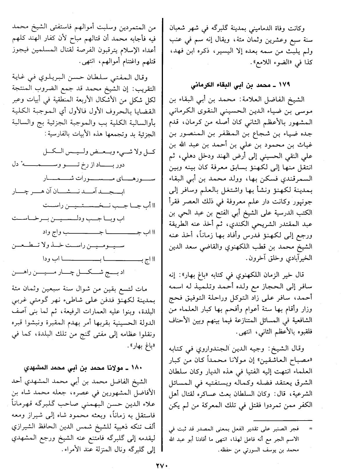 السمرقندي فسكن بها، وولد محمد بن أبي البقاء بمدينة لكهنؤ ونشأ بها واشتغل بالعلم