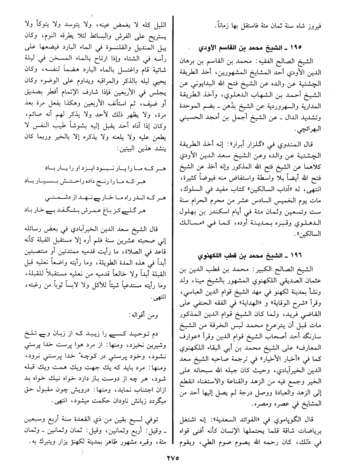 المعارف على الشيخ محمد بن أبي البقاء اللكهنوي كما في أخبار الأخيار في ترجمة