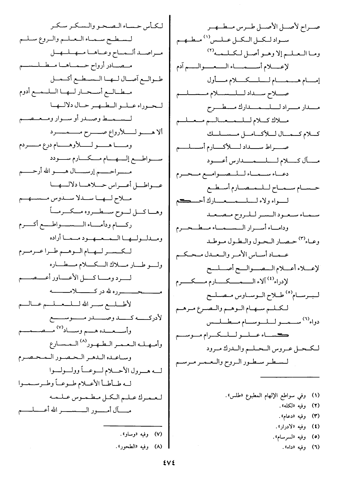 طوالع آصال لها السطع أكمل مطالع أسحار لها اللمع أدوم