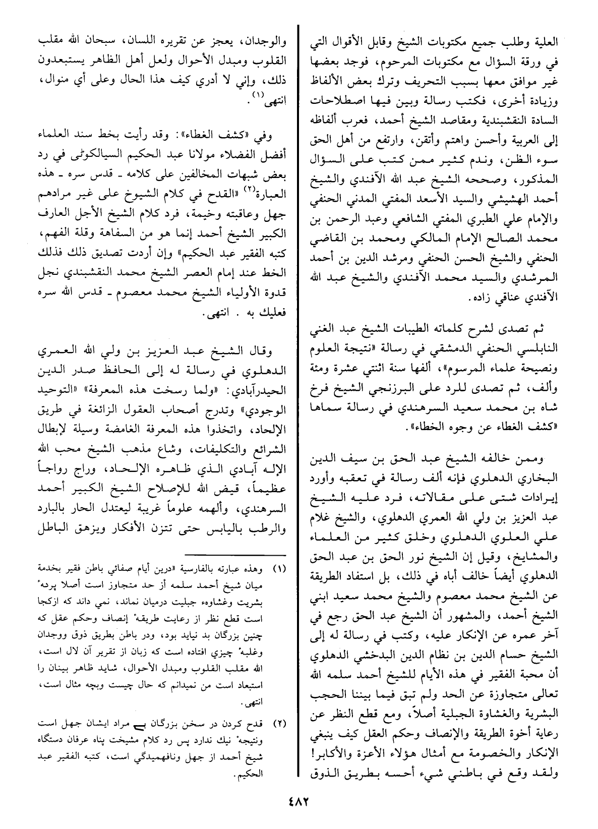 وفي كشف الغطاء: وقد رأيت بخط سند العلماء أفضل الفضلاء مولانا عبد الحكيم السيالكوتي في رد