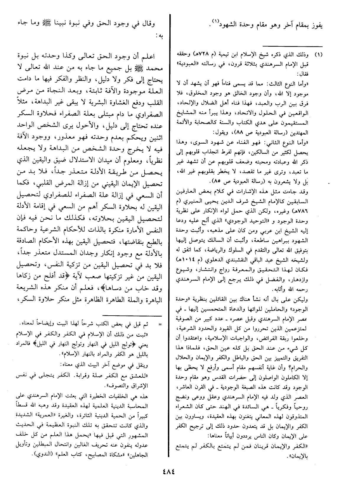 اعلم أن وجود الحق تعالى وكذا وحدته بل نبوة محمد صَلَّى اللهُ عَلَيْهِ وَسَلَّمَ بل جميع ما جاء به من