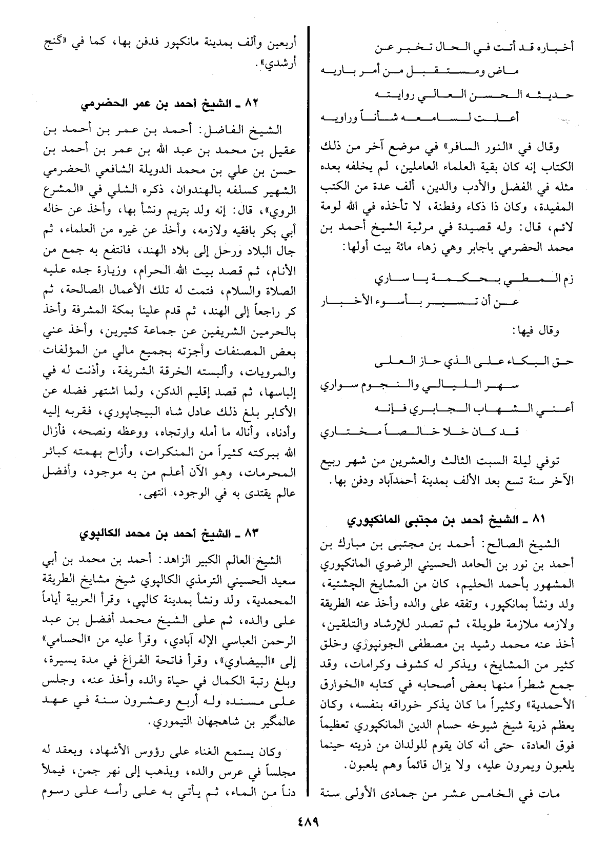 الشيخ الصالح أحمد بن مجتبي بن مبارك بن أحمد بن نور بن الحامد الحسيني الرضوي المانكبوري