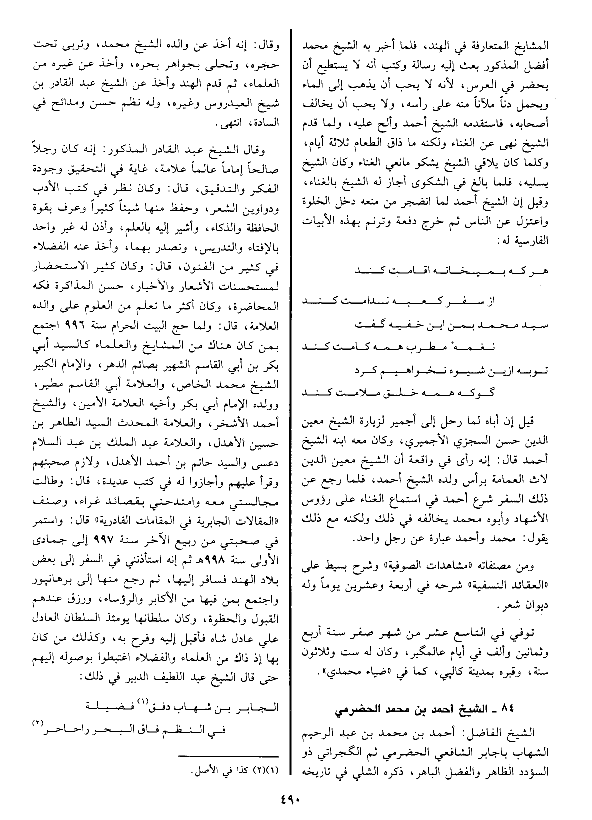 تحت حجره، وتحلى بجواهر بحره، وأخذ عن غيره من العلماء، ثم قدم الهند وأخذ عن الشيخ عبد