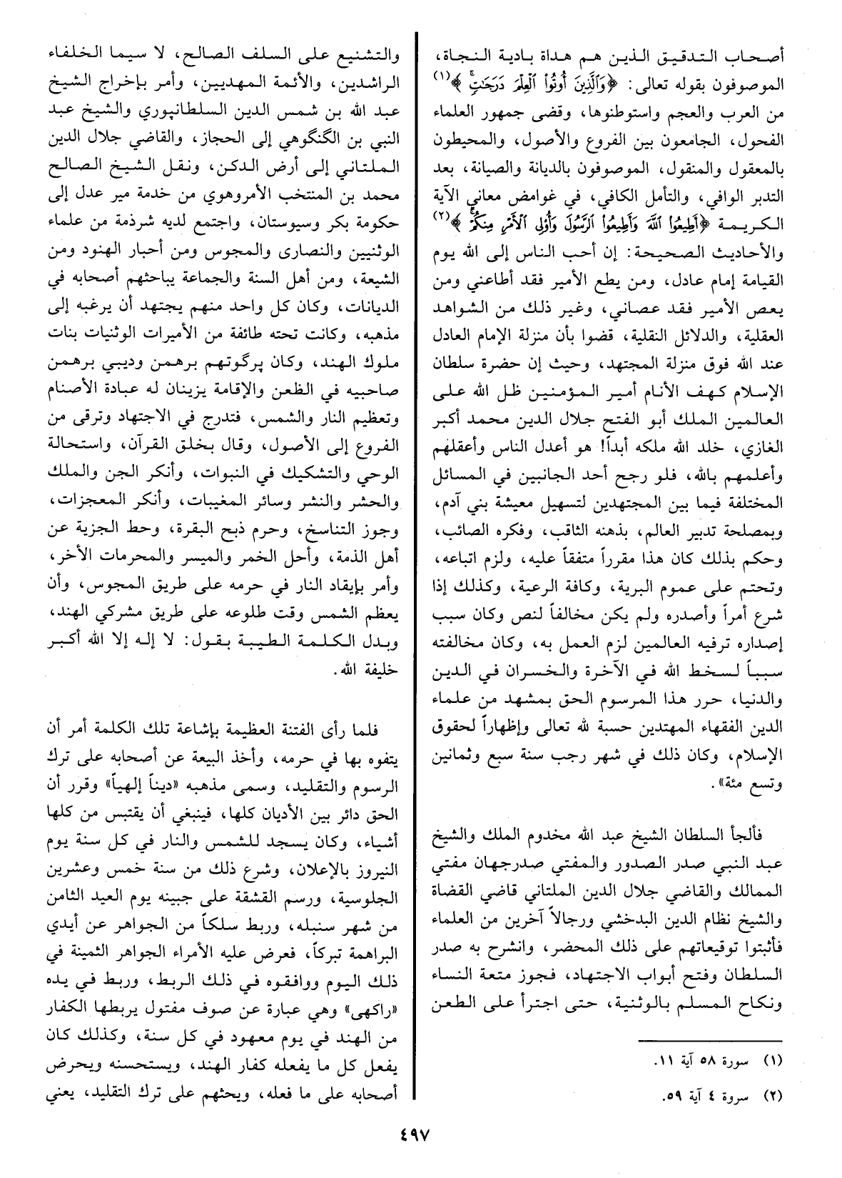 مفتي الممالك والقاضي جلال الدين الملتاني قاضي القضاة والشيخ نظام الدين البدخشي ورجالاً