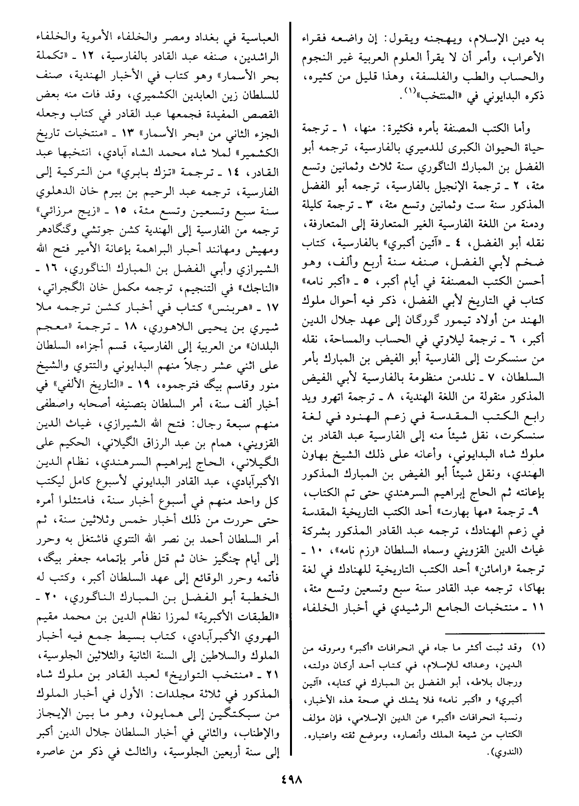 سبكتكين إلى همايون، وهو ما بين الايجاز والاطناب، والثاني في أخبار السلطان جلال الدين أكبر