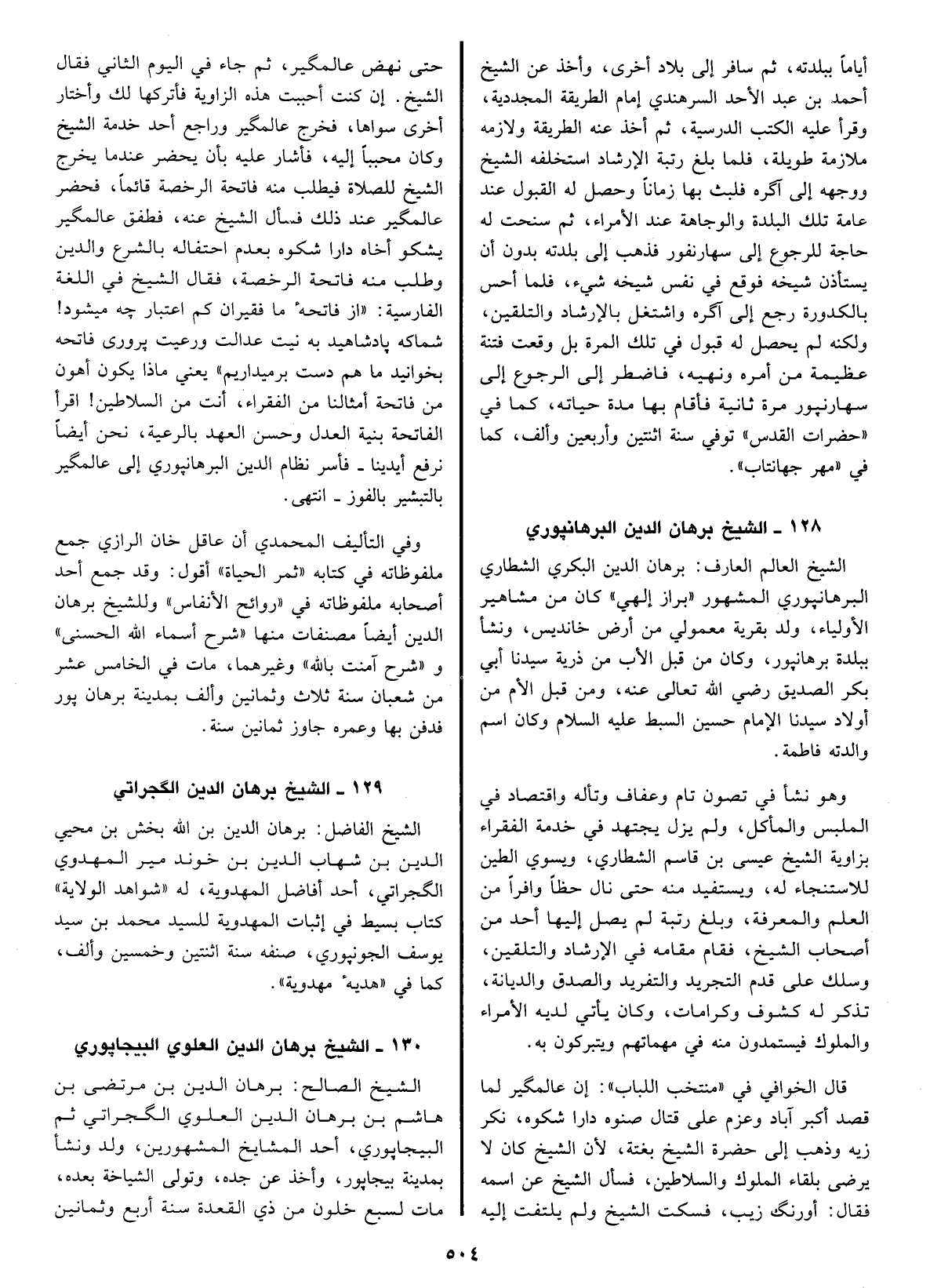 الشيخ عن اسمه فقال: أورنك زيب، فسكت الشيخ ولم يلتفت إليه حتى نهض عالمكير، ثم جاء في