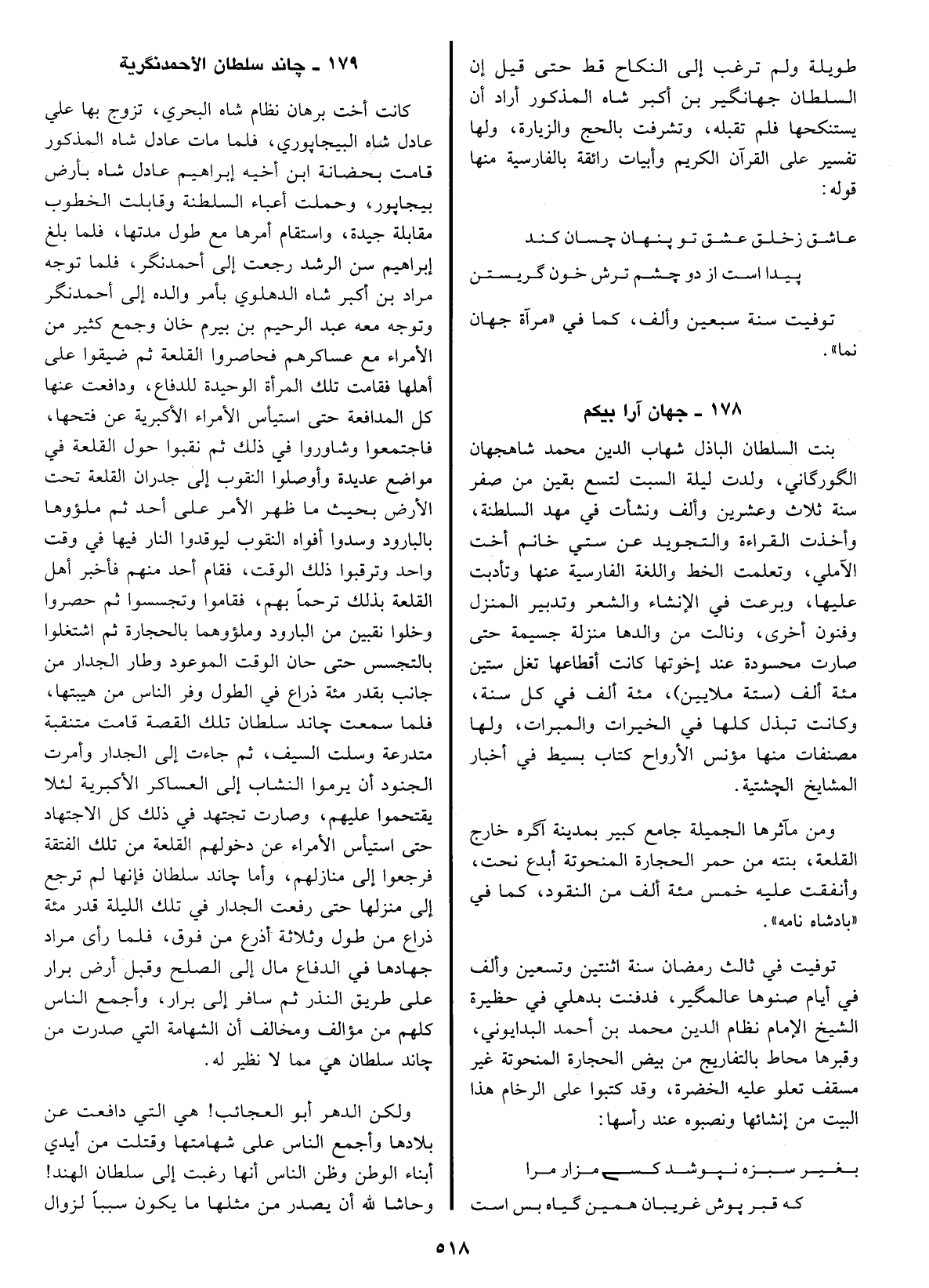 المذكور قامت بحضانة ابن أخيه إبراهيم عادل شاه بأرض بيجابور، وحملت أعباء السلطنة وقابلت