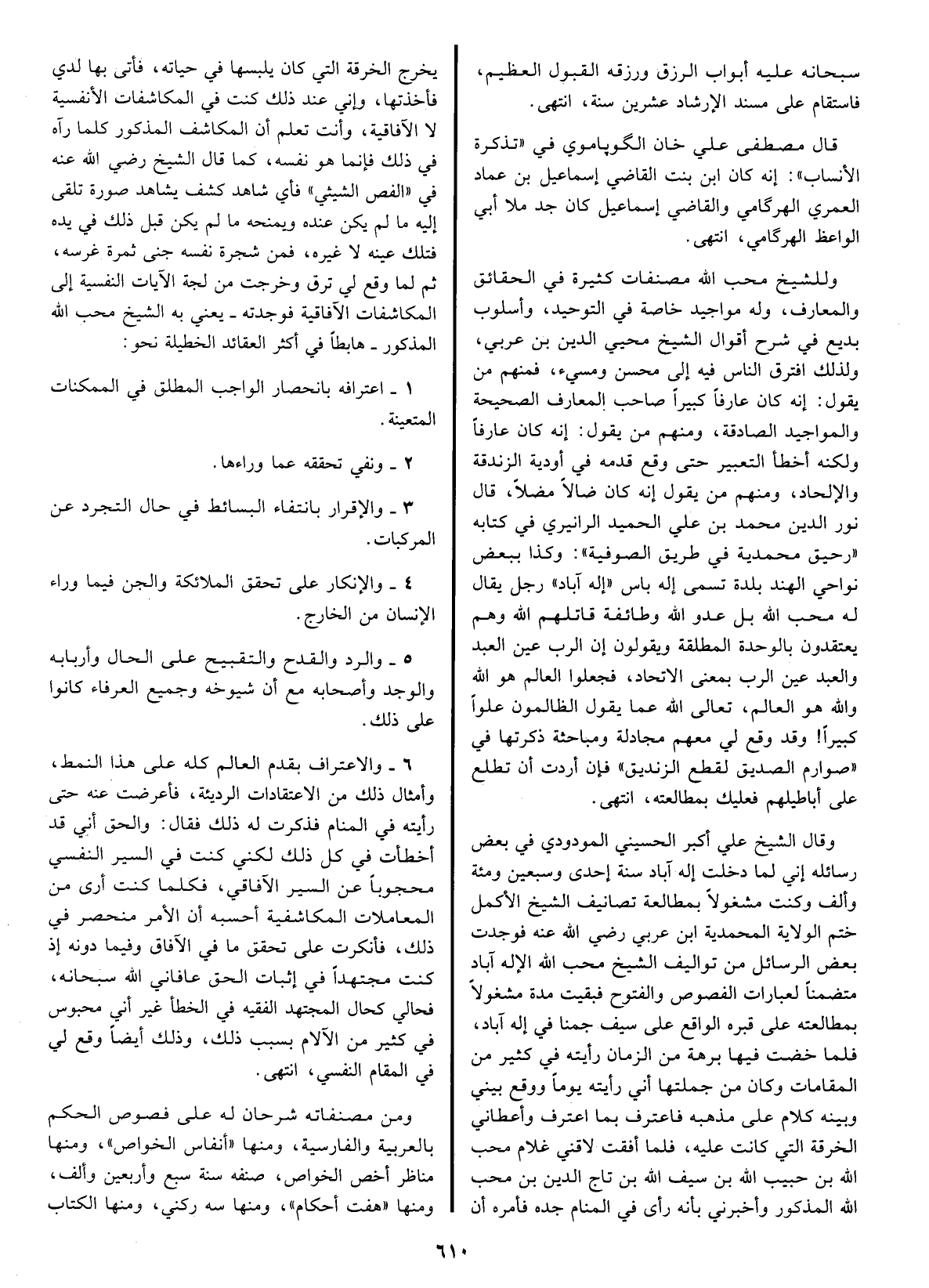 محب الله المذكور - هابطاً في أكثر العقائد الخطيلة نحو: