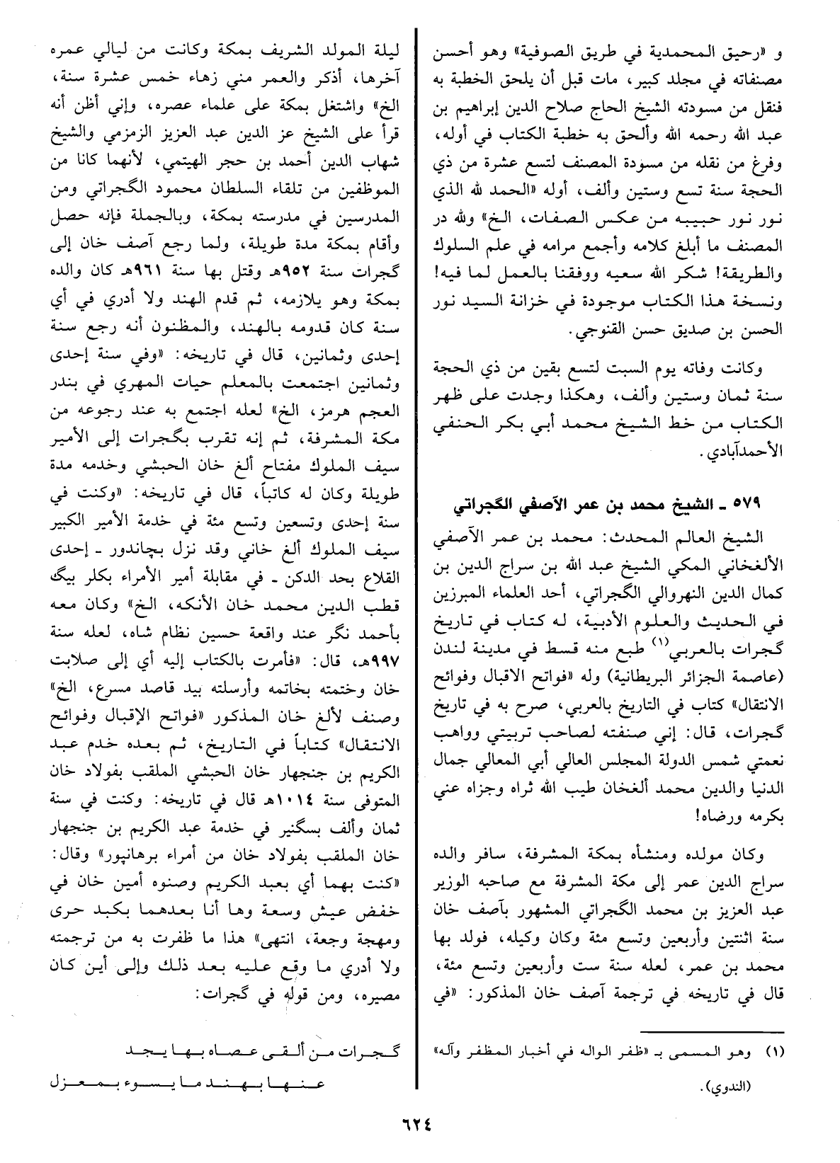 طويلة، ولما رجع آصف خان إلى كجرات سنة 952 هـ وقتل بها سنة 961 هـ كان والده بمكة وهو