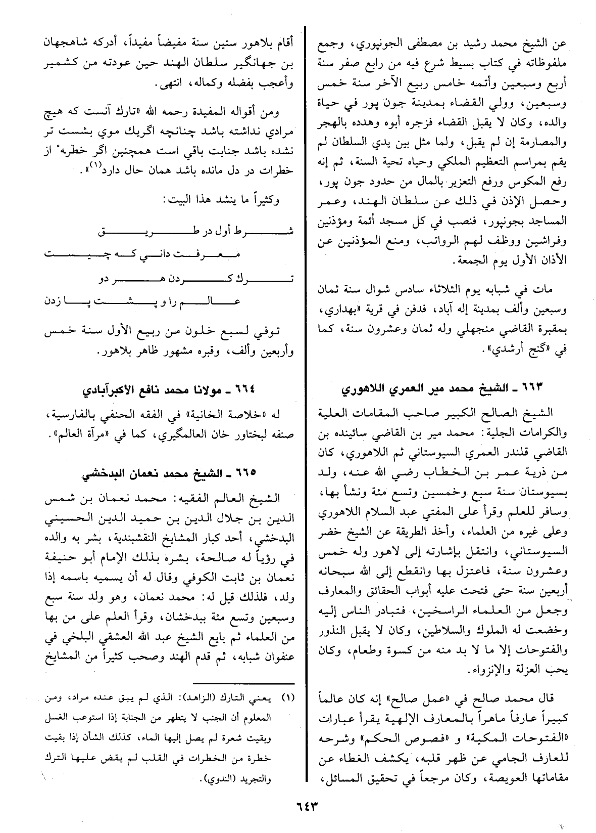 العويصة، وكان مرجعاً في تحقيق المسائل، أقام بلاهور ستين سنة مفيضاً مفيداً، أدركه شاهجهان بن