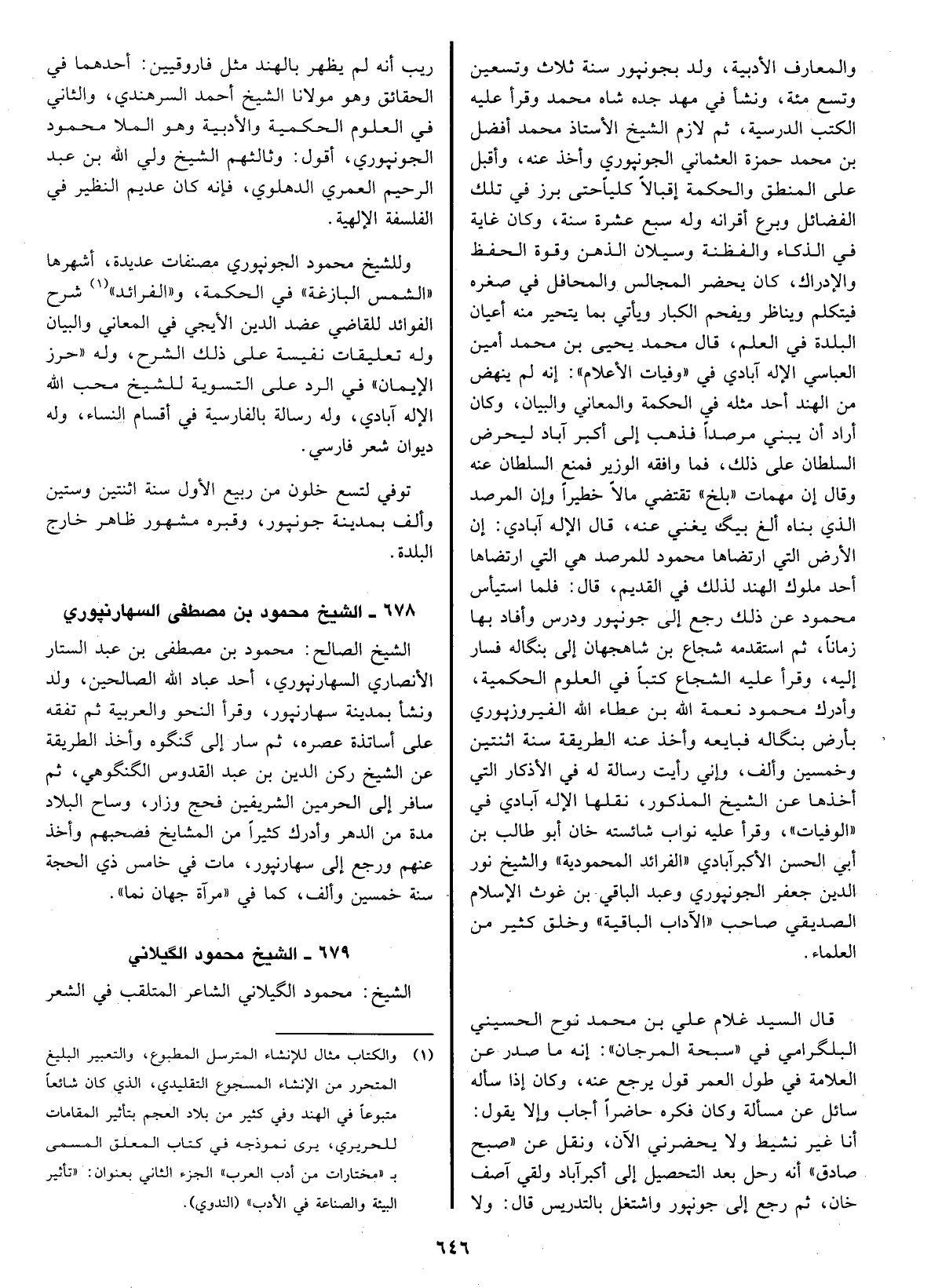 فاروقيين: أحدهما في الحقائق وهو مولانا الشيخ أحمد السرهندي، والثاني في العلوم الحكمية والأدبية