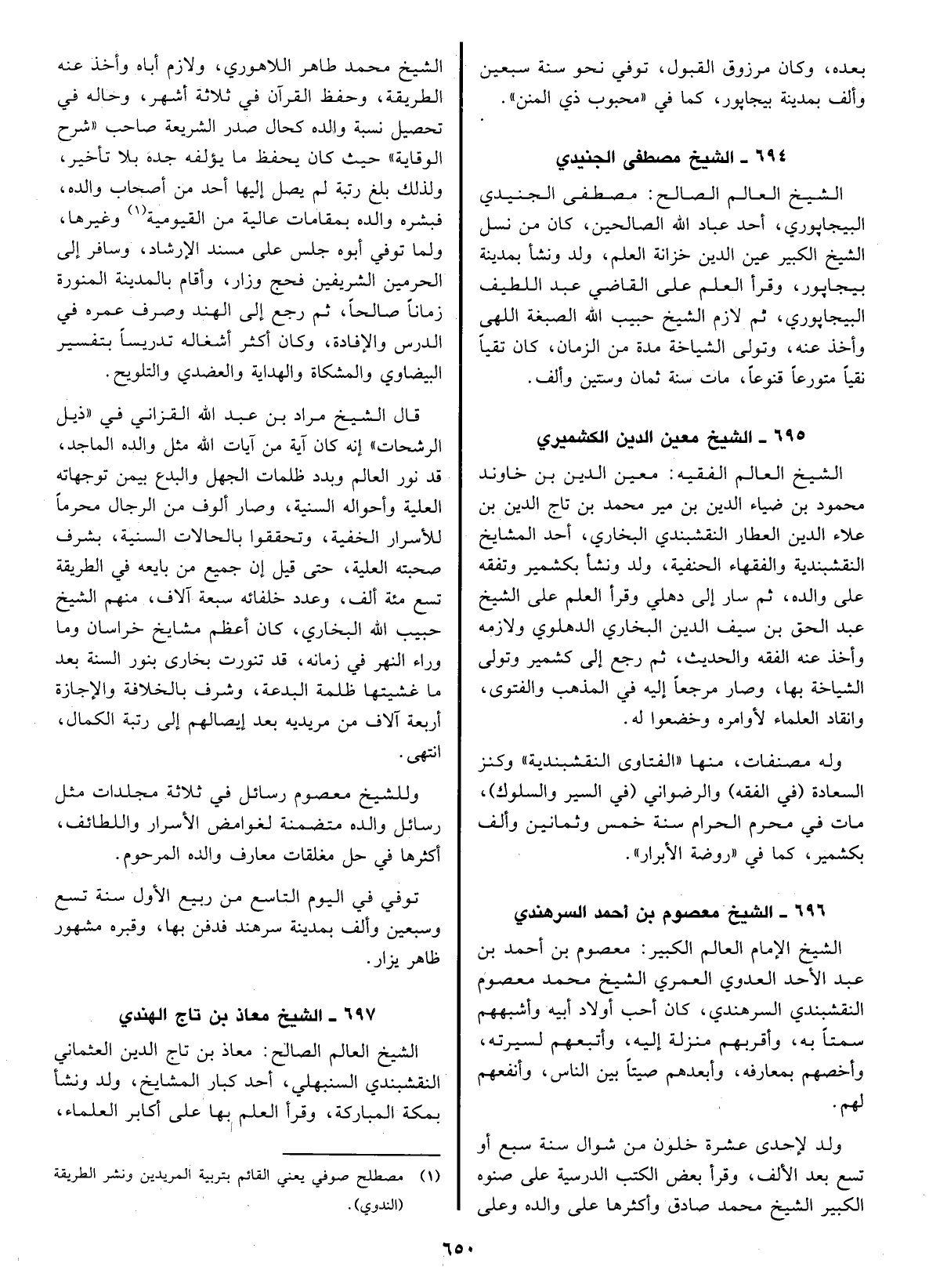 الشيخ العالم الصالح معاذ بن تاج الدين العثماني النقشبندي السنبهلي، أحد كبار المشايخ، ولد ونشأ