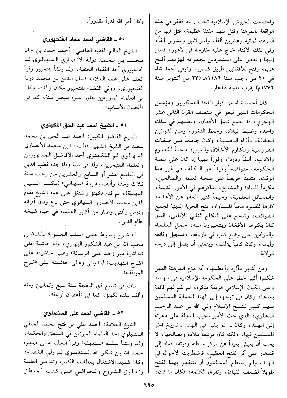 الشيخ العالم الفقيه القاضي أحمد حماد بن جان محمد بن محمد دولة الأنصاري السهالوي ثم
