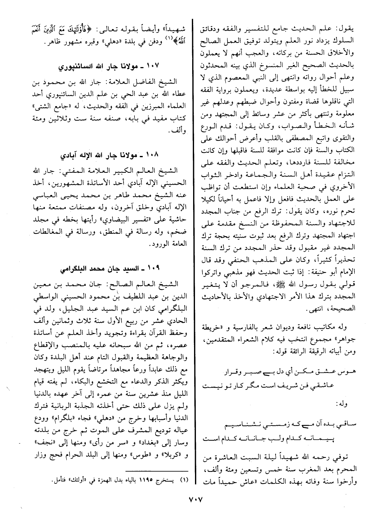 الشيخ الفاضل العلامة جار الله بن محمود بن عطاء الله بن عبد الحي بن علم الدين السائنبوري أحد