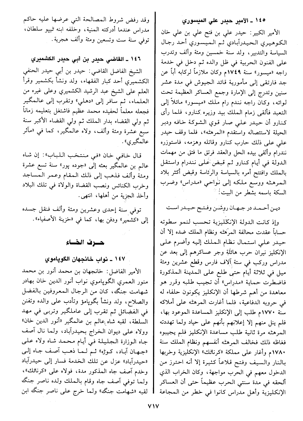 الأمير الكبير حيدر علي بن فتح علي بن علي خان الكوهيري الحيدرآبادي ثم الميسوري أحد رجال