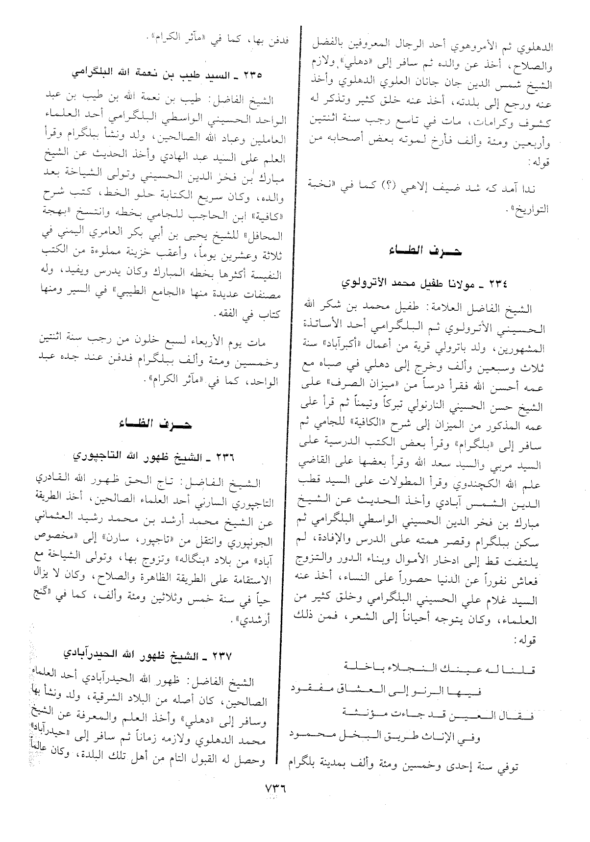 الشيخ الفاضل العلامة طفيل محمد بن شكر الله الحسيني الأترولوي ثم البلكرامي أحد الأستاذة