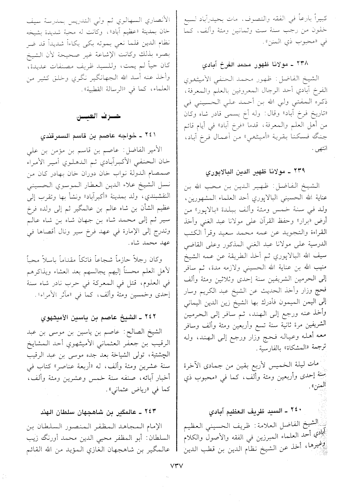 صمصام الدولة نواب خان دوران خان بهادر كان من نسل الشيخ علاء الدين العطار الموسوي