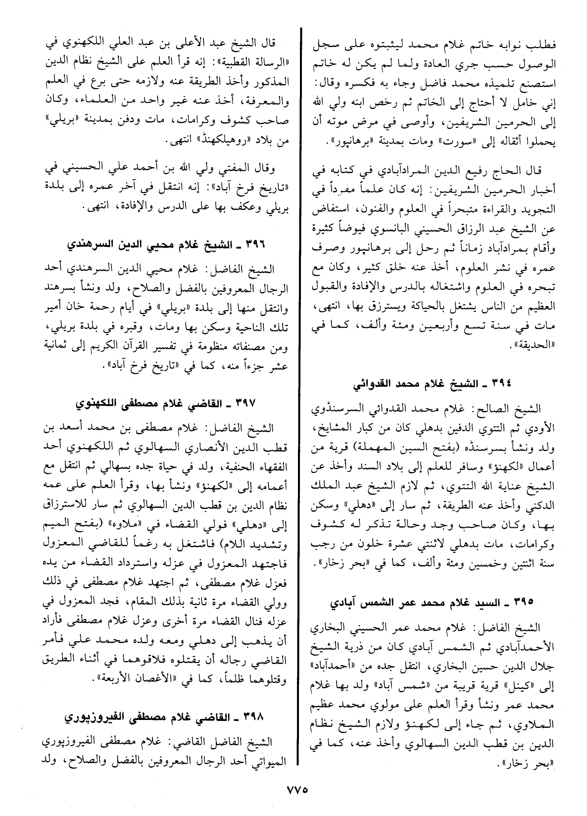 المشايخ، ولد ونشأ بسرسنده بفتح السين المهملة قرية من أعمال لكهنؤ وسافر للعلم إلى بلاد السند