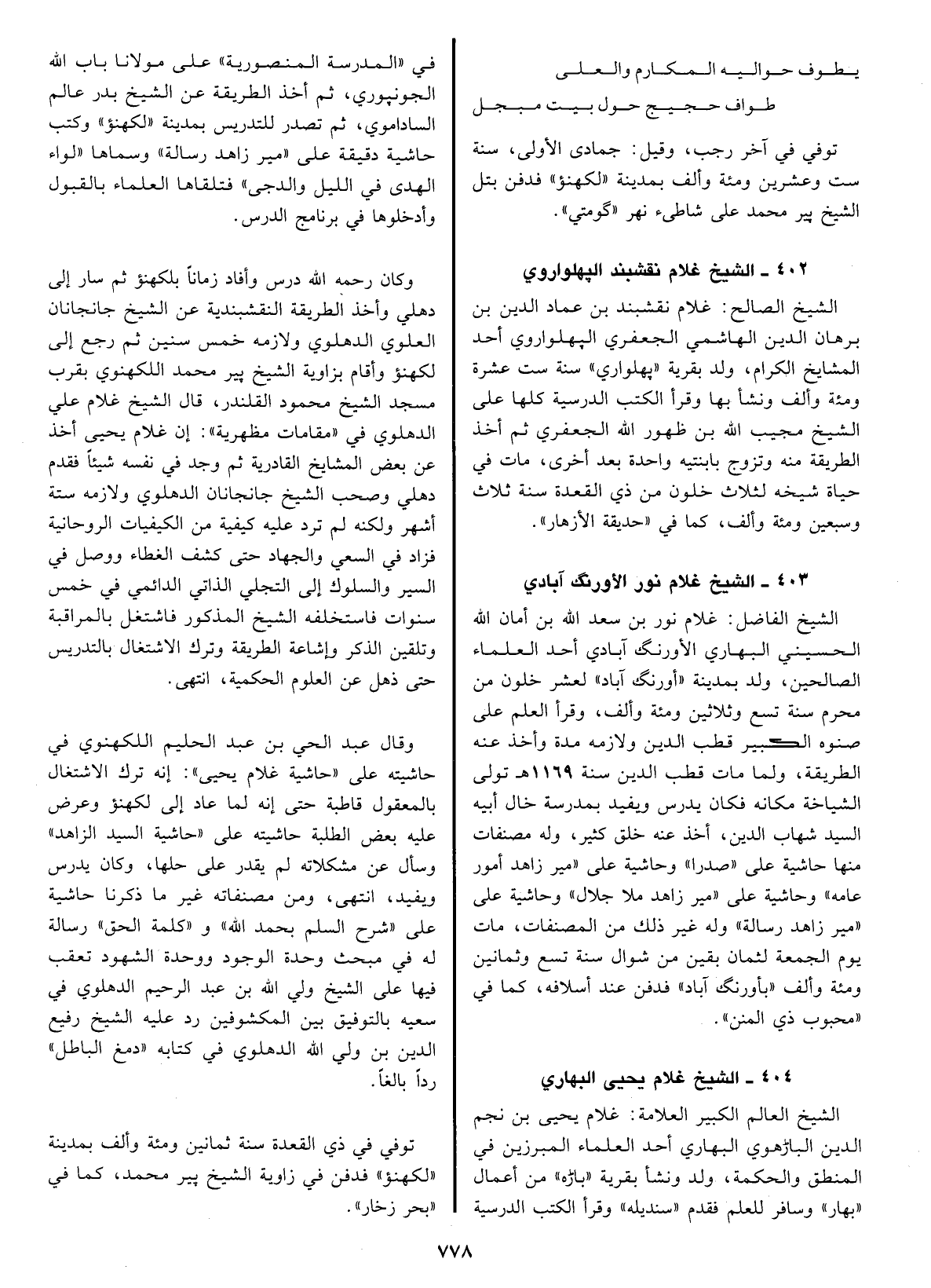 الشيخ العالم الكبير العلامة غلام يحيى بن نجم الدين البازهوي البهاري أحد العلماء المبرزين في