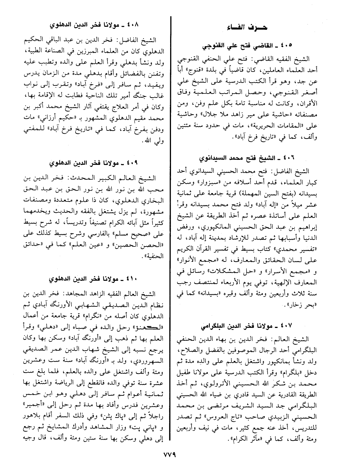 الشيخ العالم فخر الدين بن بهاء الدين الحنفي البلكرامي أحد الرجال الموصوفين بالفضل والصلاح،