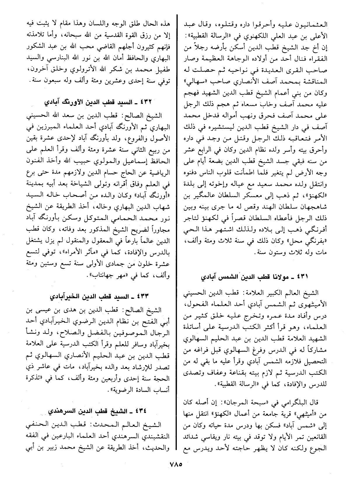الشيخ العالم الكبير العلامة قطب الدين الحسيني الأميثهوي ثم الشمس آبادي أحد العلماء الفحول،