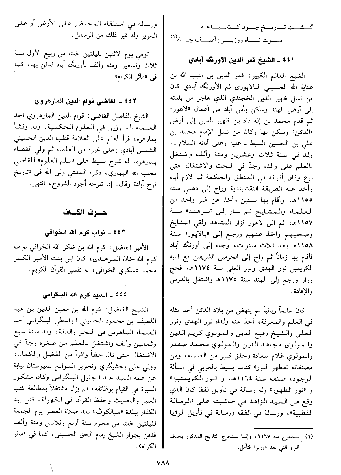 الشيخ الفاضل كرم الله بن معين الدين بن عبد اللطيف بن محمود الحسيني الواسطي البلكرامي أحد