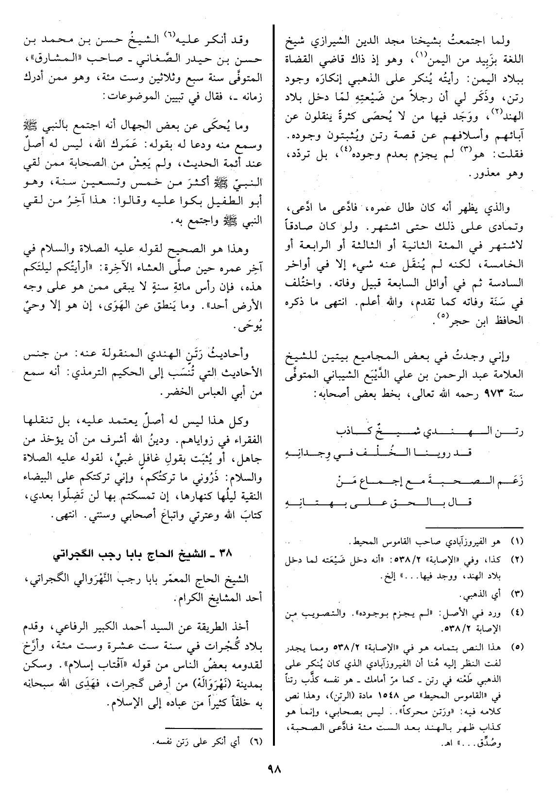 بعض الناس من قوله آفتاب اسلام وسكن بمدينة نهرواله من أرض كجرات فهدى الله