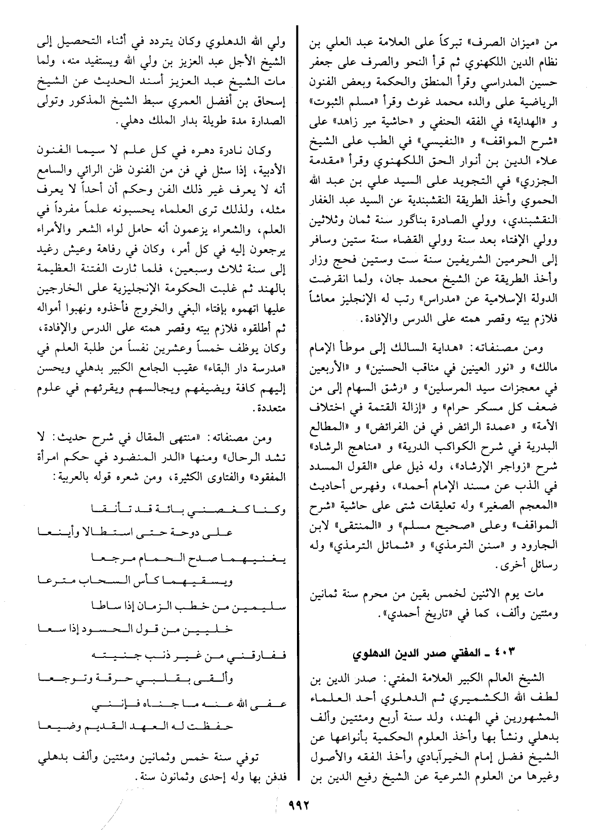 الشيخ المذكور وتولى الصدارة مدة طويلة بدار الملك دهلي.