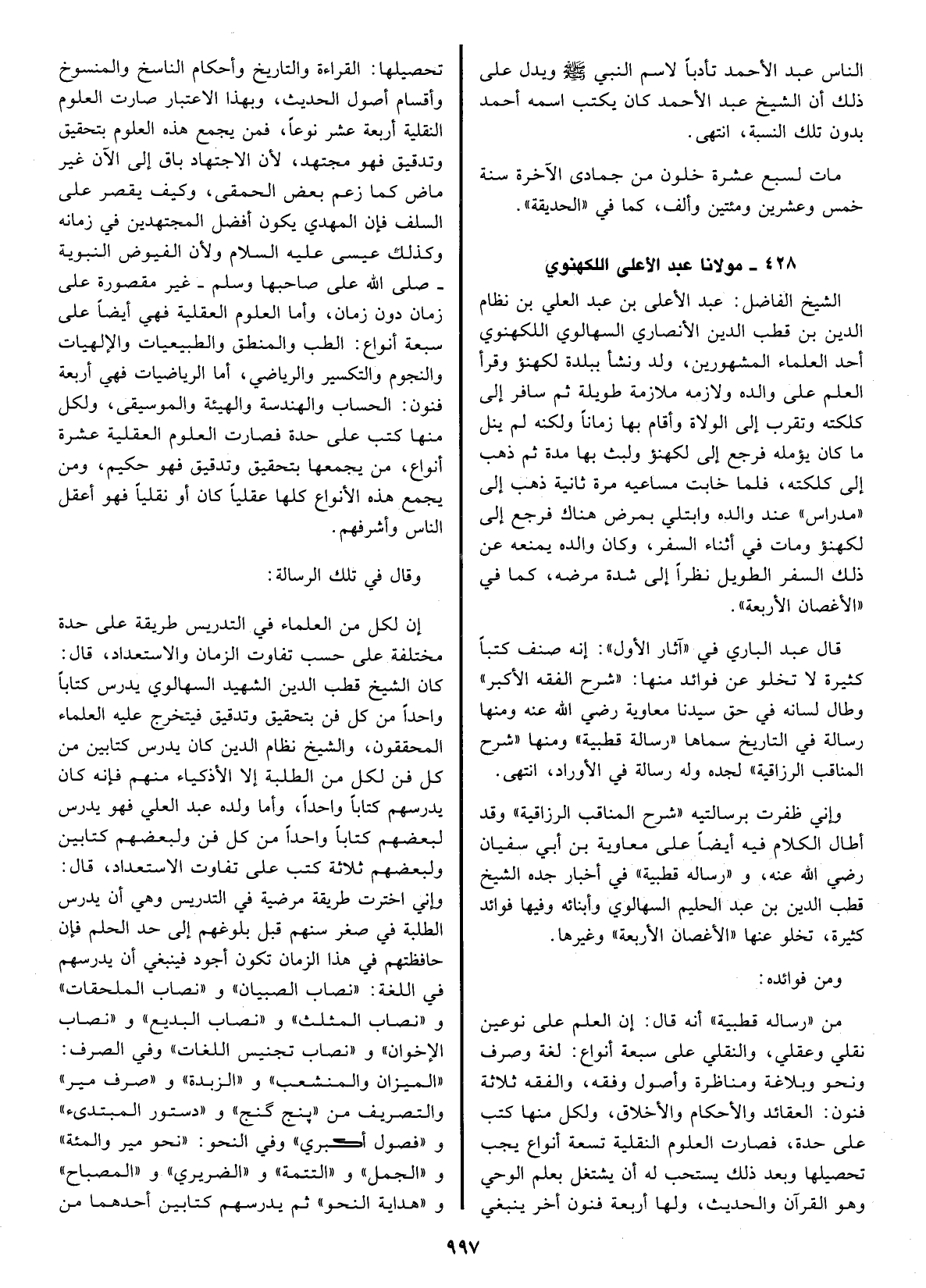 الشيخ الفاضل عبد الأعلى بن عبد العلي بن نظام الدين بن قطب الدين الأنصاري السهالوي