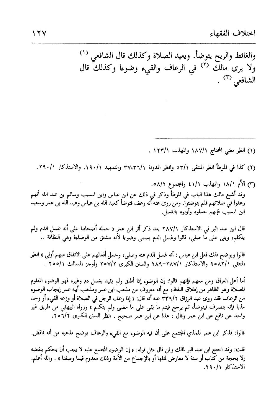 ولا يَرَى مَالك فِي الرعاف والقيء وضوءا.