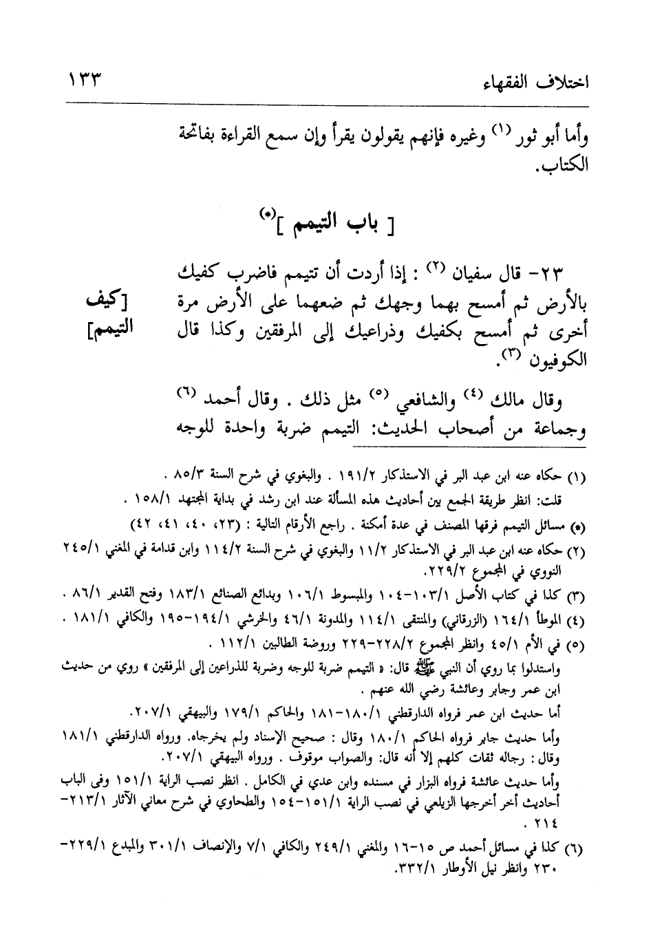 23- قَالَ سُفْيَانُ: إِذَا أردت أن تتيمم فاضرب كفيك الأرض ثُمَّ امسح بهما وجهك ثُمَّ ضعهما عَلَى الأرض مرة أُخْرَى ثُمَّ امسح بكفيك وذراعيك إِلَى المرفقين.