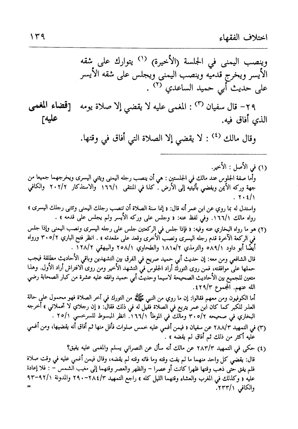 29- قَالَ سُفْيَانُ: المغمى عَلَيْهِ لَا يقضي إِلَّا صَلَاة يومه الذي أفاق فيه.
