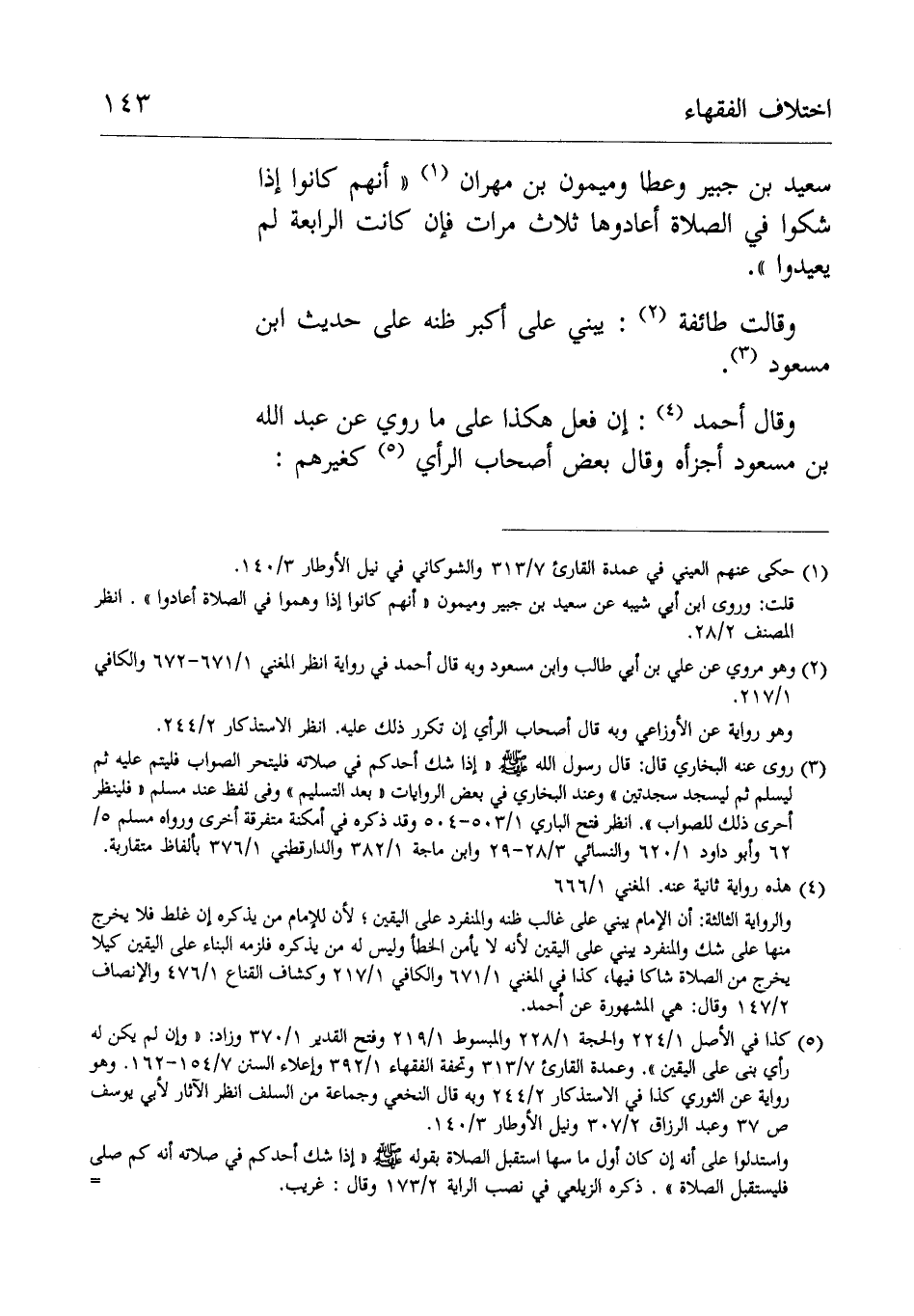 وَقَالَتْ طَائِفَةٌ: يبني عَلَى أكثر ظنه عَلَى حَدِيْث ابْن مسعود.