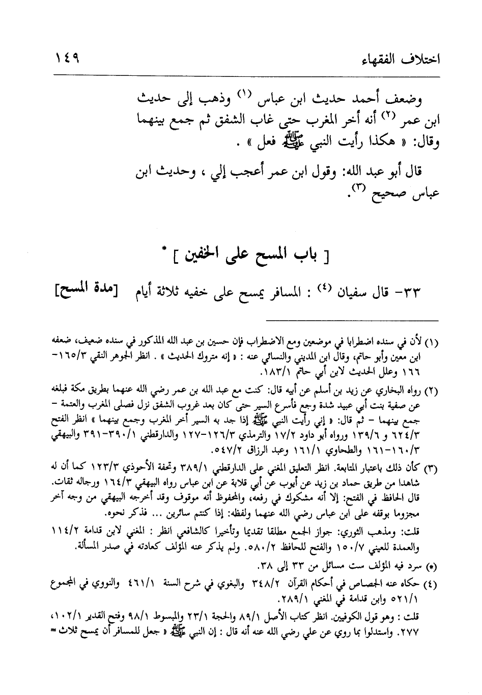 33- قَالَ سُفْيَانُ: الْمُسَافِر يمسح عَلَى خفيه ثلاثة أيام