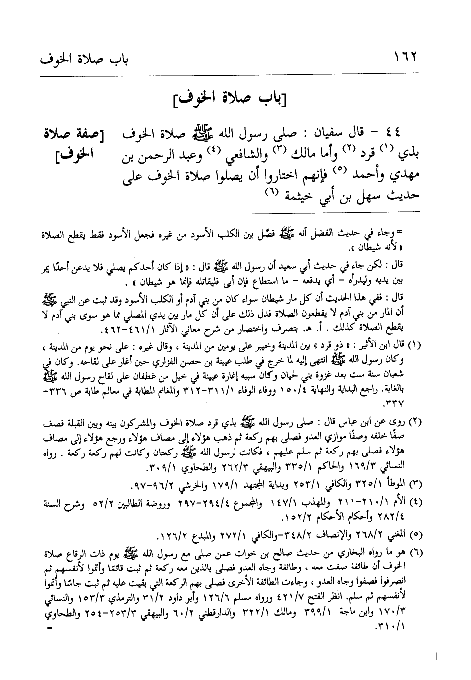 44- قَالَ سُفْيَانُ: صلى رَسُوْل اللهِ صَلَّى اللهُ عَلَيْهِ وَسَلَّمَ صَلَاة الخوف بذات الرقاع