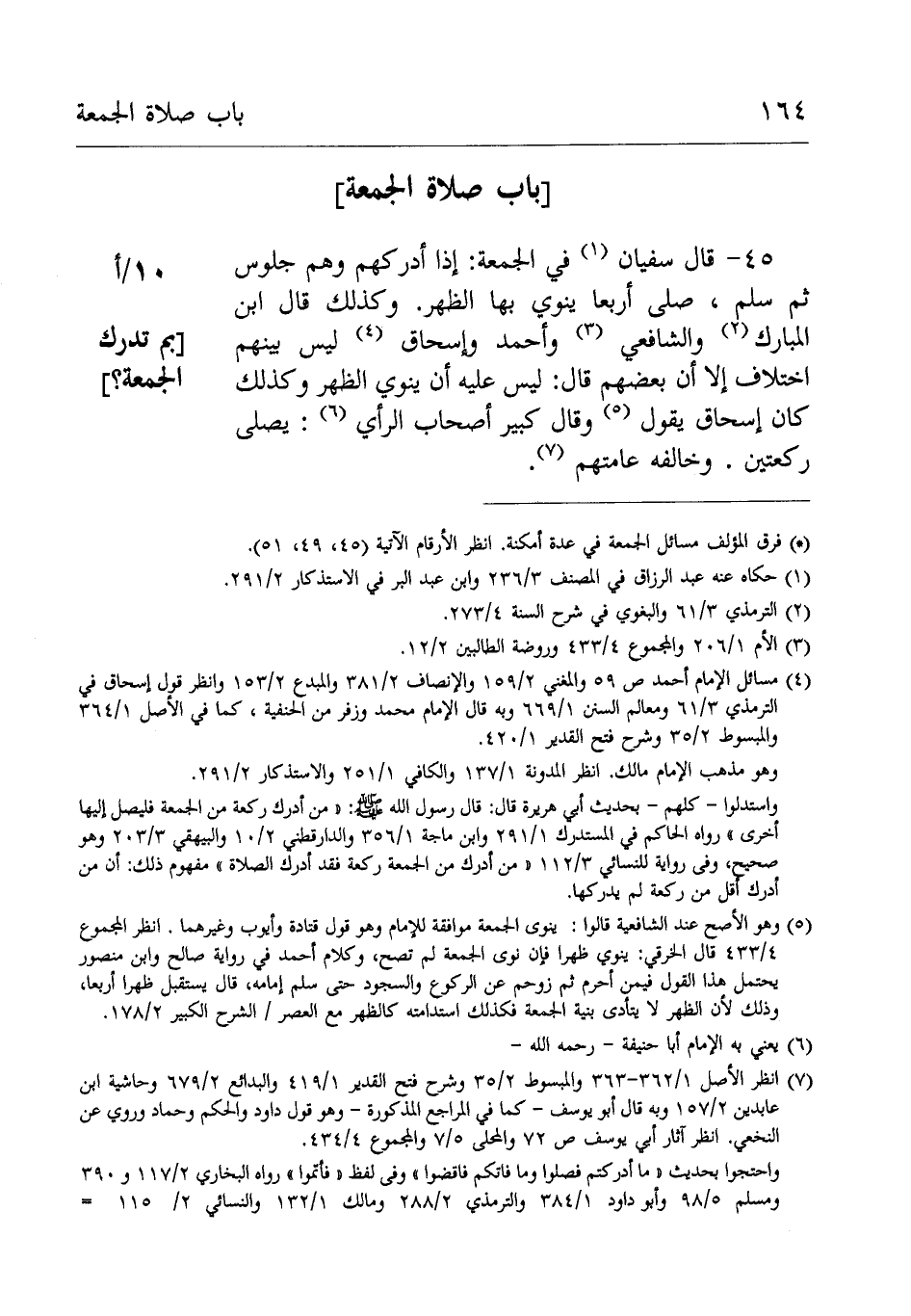 45-قَالَ سُفْيَانُ: فِي الجمعة إِذَا أدركهم وهم جلوس ثُمَّ سلم صلى أربعا ينوي بِهَا الظهر وكذَلِكَ قَالَ: ابن الْمُبَارَك