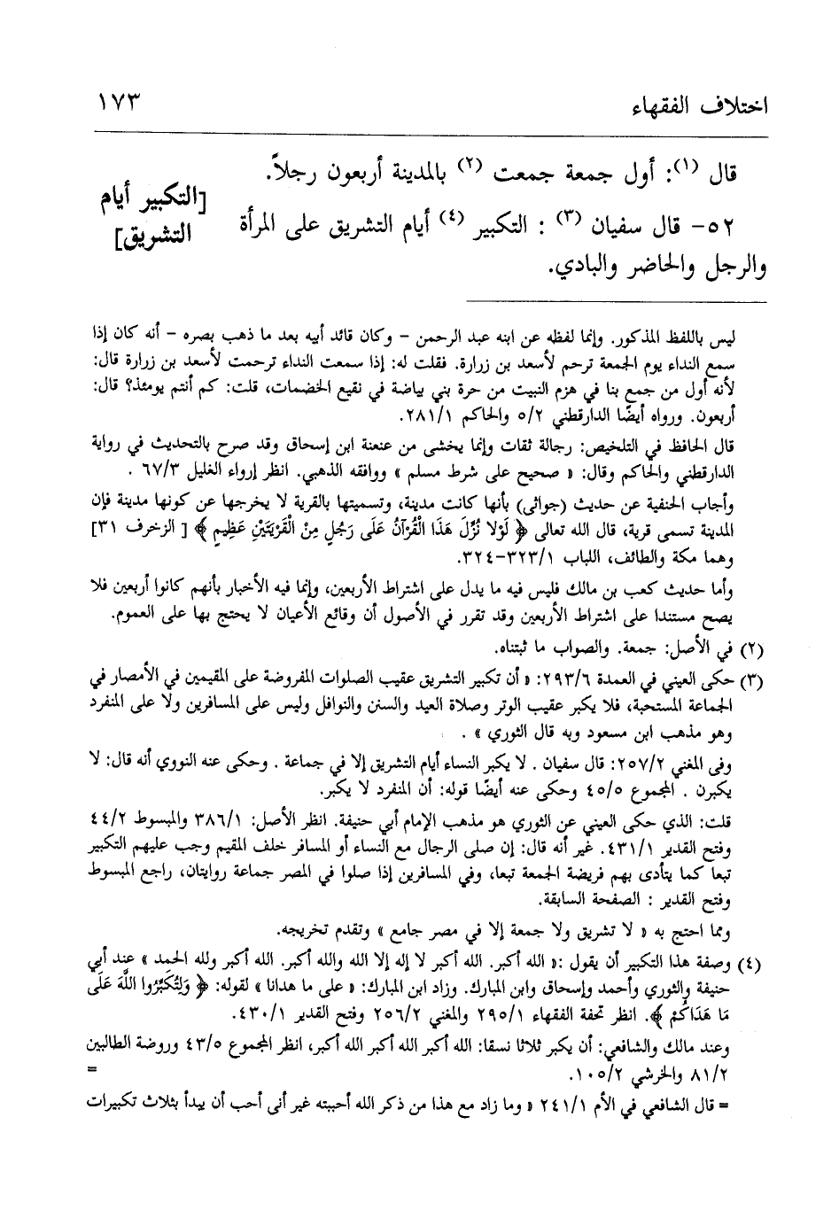 52- قَالَ سُفْيَانُ: التكبير أيام التشريق عَلَى الْمَرْأَة والرَّجُل والحاضر والبادي