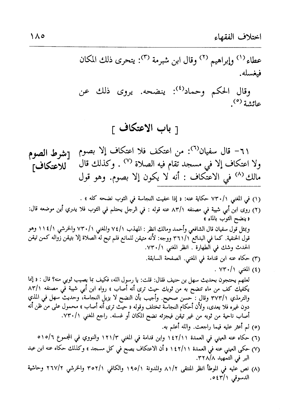 61- قَالَ سُفْيَانُ: من اعتكف فلا اعتكاف إِلَّا بصوم ولا اعتكاف إِلَّا فِي مسجد تقام فيه الصَّلَاة وكذَلِكَ قَالَ مَالِكٌ فِي الاعتكاف إنه لَا يكون إِلَّا بصوم وَهُوَ قول