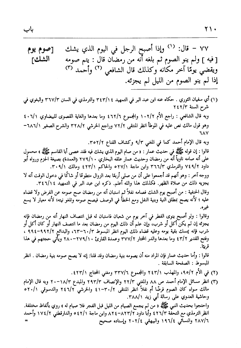 77- قال: وإِذَاأصبح الرَّجُل فِي اليوم الذي يشك [فيه] ولم ينو الصيام ثُمَّ بلغه أَنَّهُ من ر مضان.