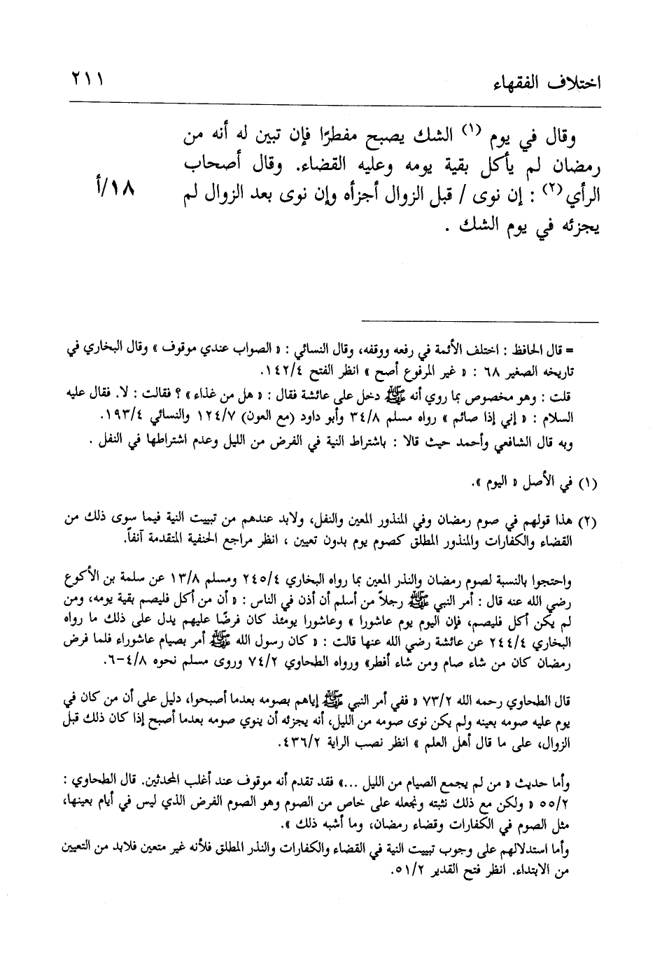 وَقَالَ أَصْحَابُ الرَّأْيِ: إن نوى قبل الزوال أجزأه وإن نوى بَعْد الزوال لم يجزئه فِي يوم الشك