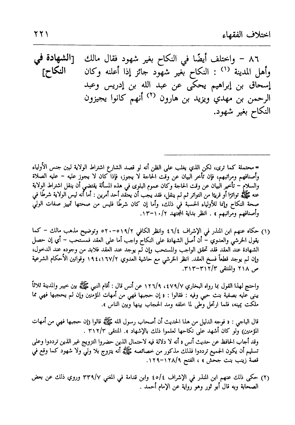 86- واخْتَلَفَأيضا فِي النكاح بغير شهود