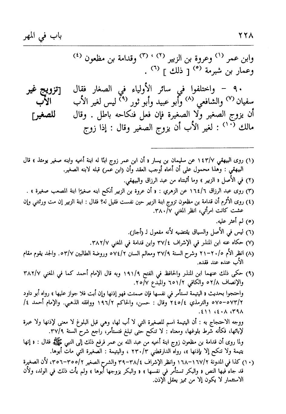 90- واخْتَلَفُوْا فِي سائر الأولياء فِي الصغار