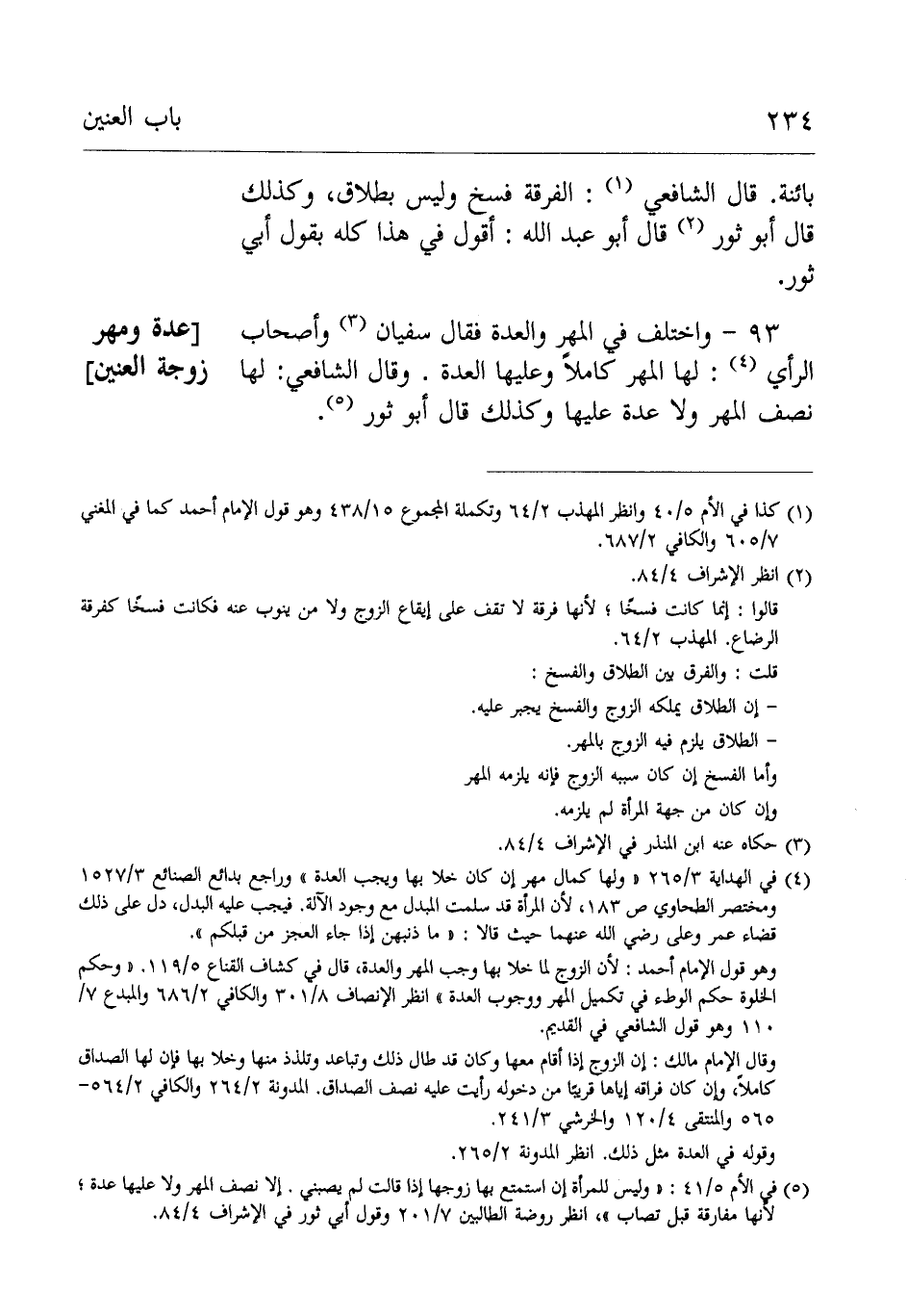 فقَالَ سُفْيَانُ وأَصْحَاب الرَّأْيِ: لها المهر كاملا وعليها العدة